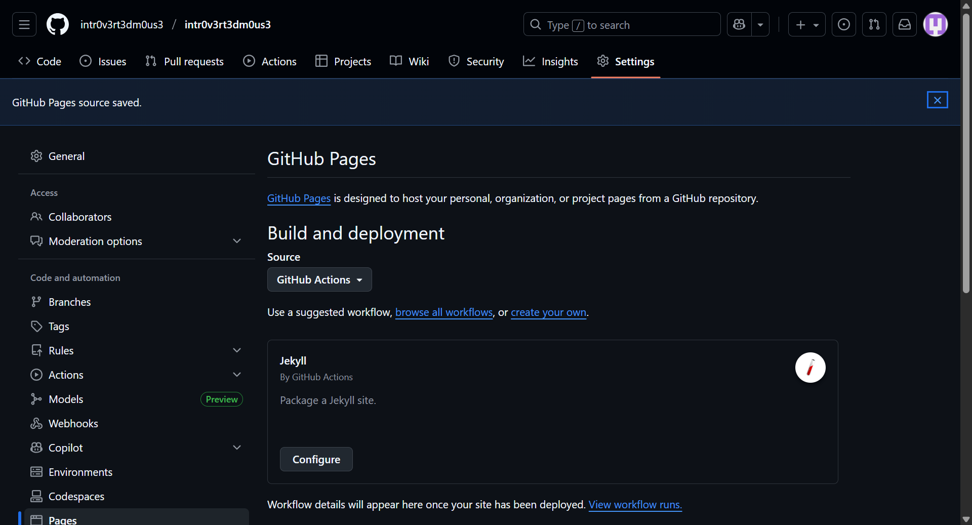 Step 3: Configure GitHub Pages
